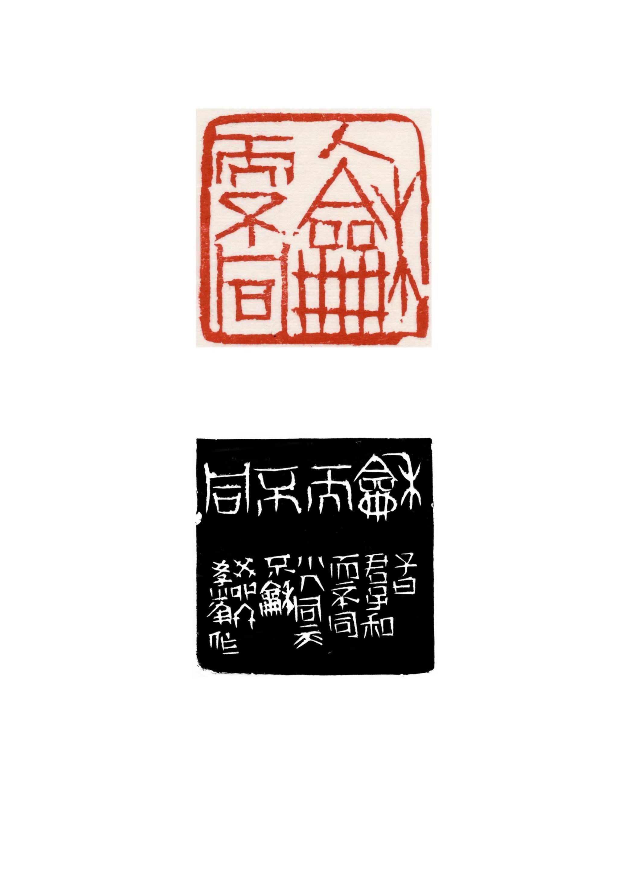 “和而不同”篆刻。青田石,尺寸6—6cm,2023年创作。