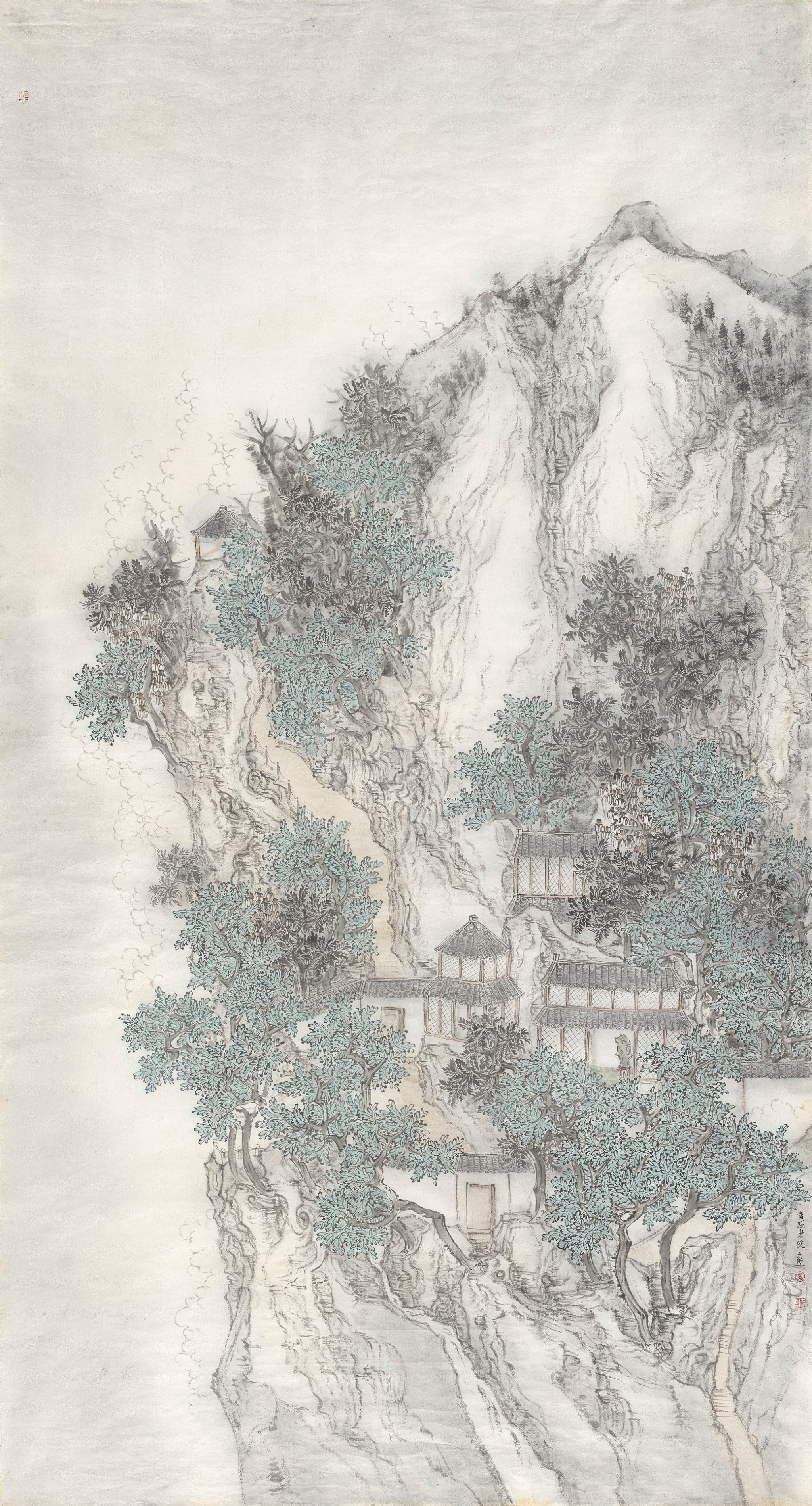青城書院 180×96cm 纸本水墨设色