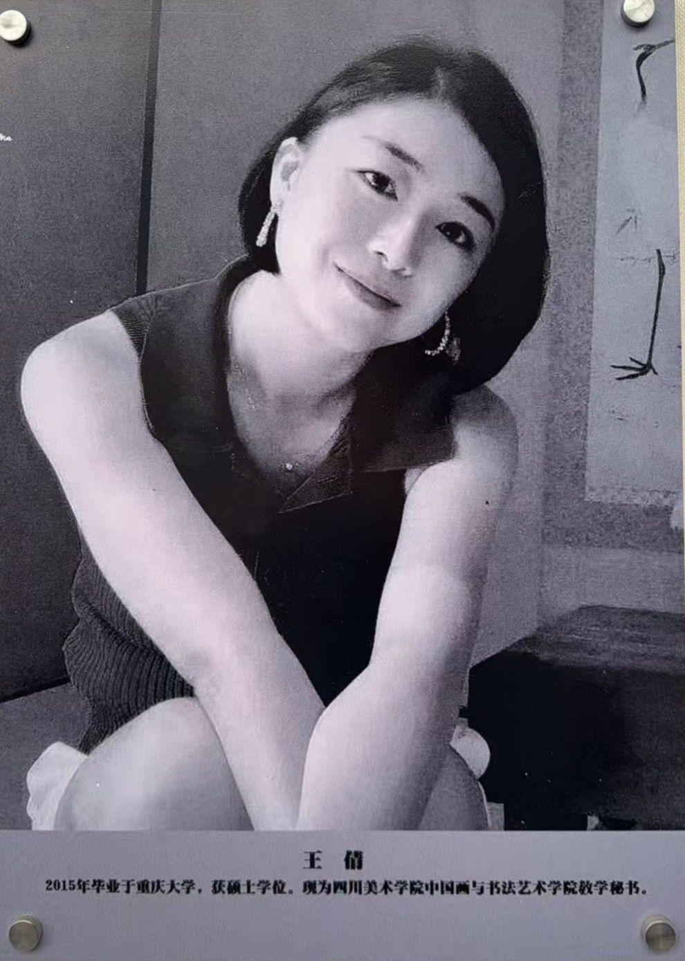 王倩,2015年毕业于重庆大学,获硕士学位。现为四川美术学院中国画与书法艺术学院教学秘书。