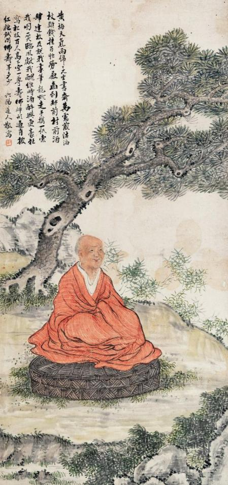 他的作品面貌比较传统,诗书画印皆备,特别是喜爱在画上题跋,跋文丰富,书法功底深厚,位置考究。其作品内容多样,山水、人物、走兽、花鸟皆是其表现题材,风格细腻,俊秀。山水画乃是他的艺术主要面貌,主要师法元、明诸家,有赵孟頫的古意与文气,王蒙的繁密与苍茫,亦有细沈、细文的意趣。皴法主要是小斧劈皴、短披麻皴、雨点皴、短条皴一类,设色淡雅,多画小青绿与浅绛山水。还有一幅《红衣罗汉》图存世,画中画一遒劲古松,一罗汉于松下坐在蒲团上打坐,近处有石头小草,身后有修竹数杆,左上角有长跋。