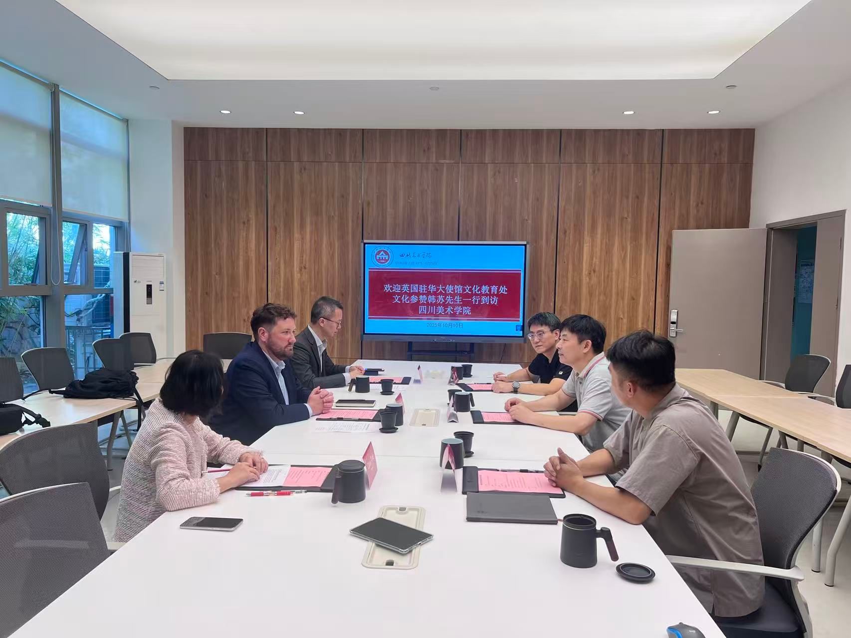 10月10日下午,英国文化教育协会中国区艺术总监、兼英国大使馆文化参赞韩苏(Dom Hastings),英国文化教育协会西南区主任黎瑞一行到校调研,围绕中英文化艺术深度交流及中英高等艺术教育协作开展座谈。学校党委常委、副院长段胜峰出席会议,国际交流与合作处相关负责人参加座谈。