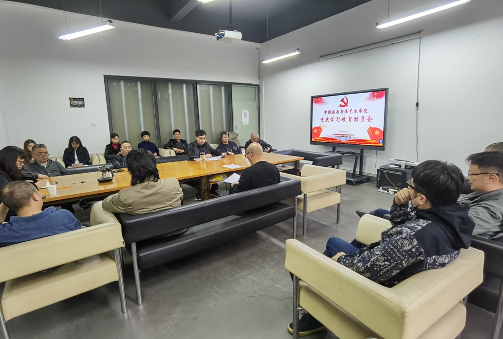 随后,副院长黄越、尚天潇也分别结合书画专业特色,动员全院教职工围绕今年党史学习的主线以及庆祝中国共产党成立100周年的重大历史节点,积极开展系列主题创作活动,特别是在全院学生中组织开展“学党史,读党史,写党史”的宣传教育活动。同时,依托网络新媒体等宣传平台,采用线上线下联动学习的方式,全面深入开展党史知识宣传教育,营造党史学习的氛围,激发广大学生党员在学党史、懂党史、用党史方面的示范作用,引导学生成为红色革命文化、优秀传统文化、社会主义先进文化的守护者和传承者。