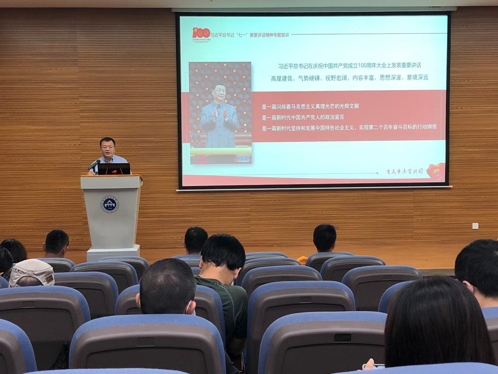 左益从总论、分论和结语三个板块,结合党的百年奋斗历程,带领大家学习了总书记讲话的丰富内涵、精神实质和思想精髓,指出,学习贯彻总书记“七一”重要讲话精神,是一个常学常新、知行合一的过程。最基本的方法是原原本本学,吃透精神实质,把握核心要义。最重要的方法是融会贯通学,把蕴含在讲话中的理论逻辑、历史逻辑、实践逻辑贯通起来。在学习贯彻过程中,我们要以高度的政治自觉、思想自觉、行动自觉,从习近平总书记“七一”重要讲话精神中汲取力量,更加奋发有为地做好各项工作,为教育事业作出贡献。