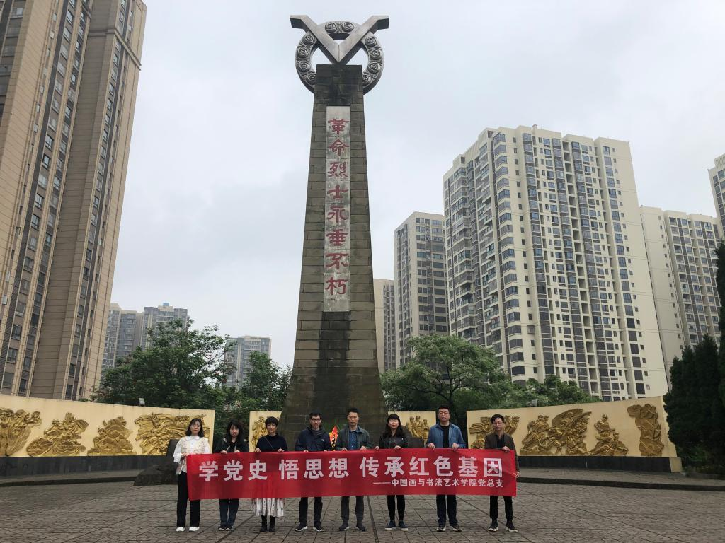 中国画与书法艺术学院在校党员师生赴永川革命烈士纪念碑园,缅怀革命先烈,深入开展党史学习教育。柏在华则为学院师生党员现场讲授微党课,简要介绍了革命先烈们的英雄事迹。