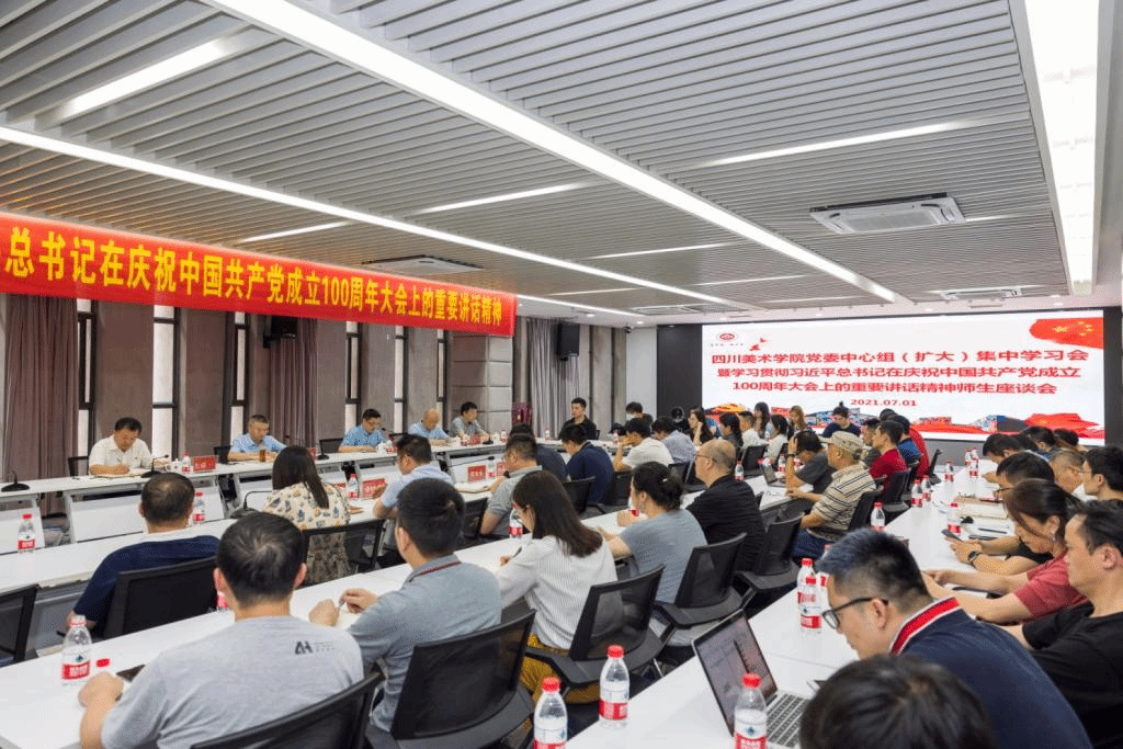 7月1日下午14时,在认真组织收听收看了庆祝中国共产党成立100周年大会后,我校党委第一时间举行党委理论学习中心组扩大集中学习,组织师生专题学习研讨习近平总书记在庆祝中国共产党成立100周年大会的重要讲话精神。会议主要任务是深入学习贯彻总书记在庆祝大会上的重要讲话精神,进一步统一思想、凝聚共识、激励干劲,为推动学校教育事业发展,建设“国内一流、国际知名”的高水平美术学院凝心聚力。