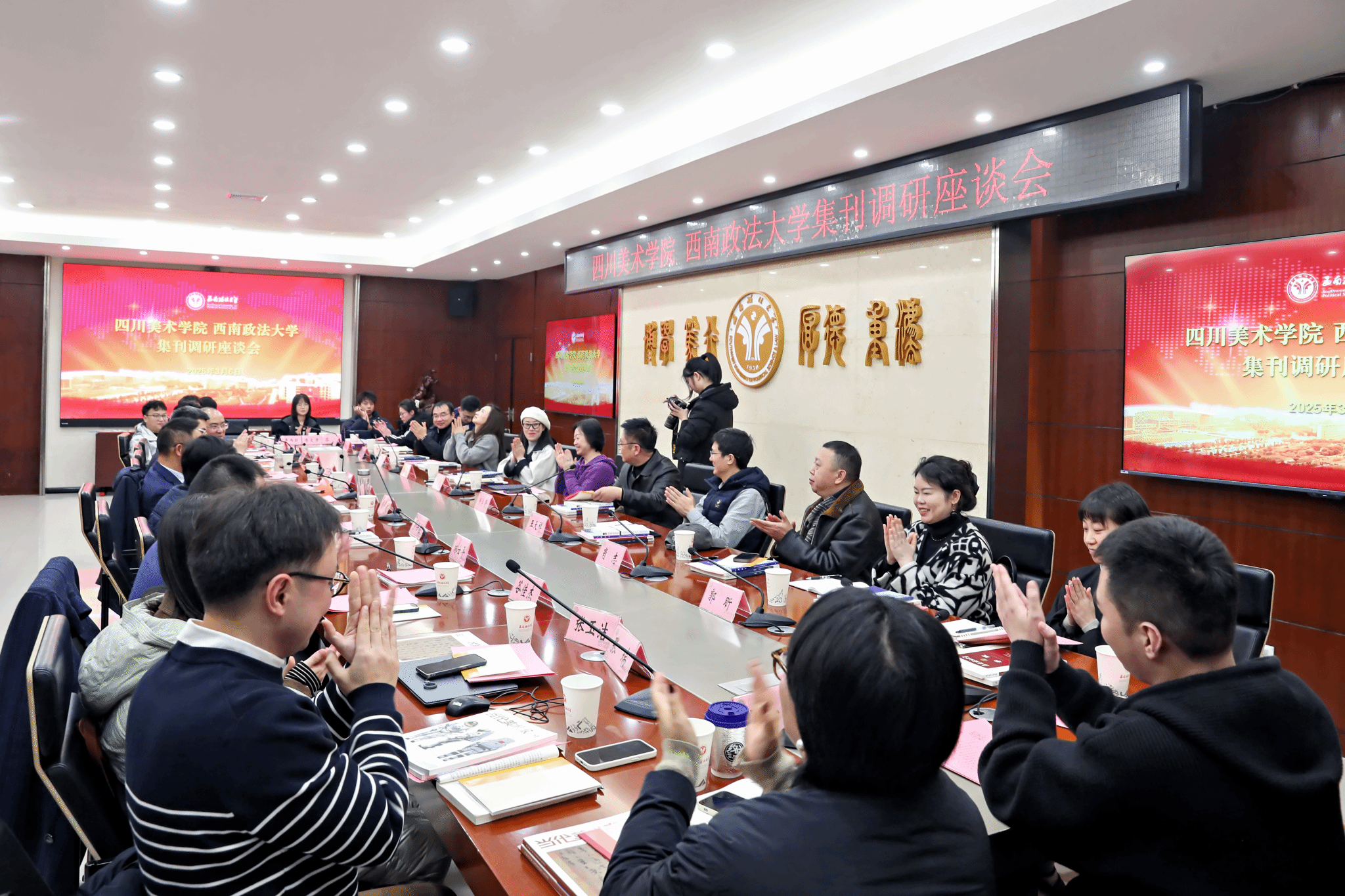 3月6日下午,“四川美术学院·西南政法大学 集刊调研座谈会”在西南政法大学勤业楼召开。我校党委常委、造型艺术学院党委书记韦芳带队,学报《当代美术家》主编黄宗贤、执行主编韩晶,艺术人文学院院长王天祥,设计学院副院长骆玉平,中国画与书法艺术学院副院长肖志、教授李永,艺术教育学院院长郭昕,造型艺术学院油画系副主任赵文悦一行前往。西南政法大学期刊社社长、《西南政法大学学报》主编黄忠,西南政法大学期刊社办公室主任邵海及西南政法大学19位集刊负责人参加座谈会。