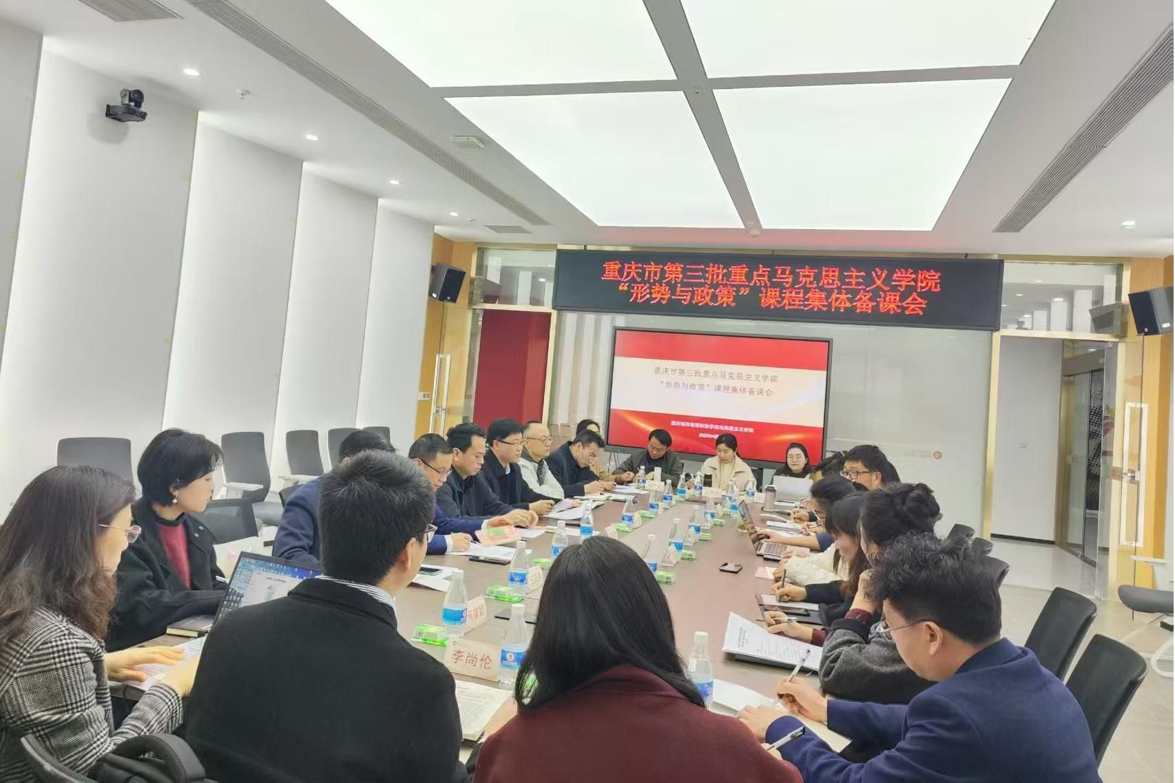 4月3日,重庆市第三批重点马克思主义学院“形势与政策”集体备课会在重庆城市管理职业学院马克思主义学院召开。来自四川美术学院、四川外国语大学、重庆医科大学、重庆理工大学、重庆电子科技职业大学、重庆城市管理职业学院、重庆工业职业技术学院、重庆工程职业技术学院的马克思主义学院负责人及“形势与政策”课程骨干教师代表参会,共商课程建设新路径,共谋协同发展新方向。学校马克思主义学院组团参加此次会议。