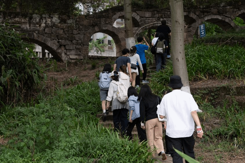 15日上午9时,在四川美术学院艺术人文学院刘静副教授的陪同下,“数智视界:计算艺术|科技艺术”工作坊团队一同来到重庆李子坝单轨穿楼景点,感受眼前的8D山城智慧城市建设的“魔幻名片”,与身后开阔的嘉陵江和高楼林立的“重庆森林”。刘静老师一边带领大家穿梭于热情的重庆市民之中,一边介绍着这座两江环抱的“抗战陪都”的光荣历史与城市活力。