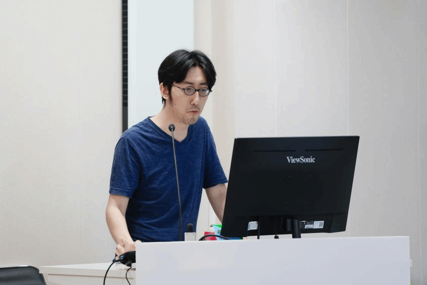 北京大学艺术学院高峰助理教授介绍了北京大学艺术学院计算艺术实验室的发展和教学情况。他首先从个体成长经验的视角,分享了自己在计算机科学、人工智能领域的多年实践,以及在中央美术学院的教学经验,给工作坊师生传递了追求个人兴趣和目标的重要性。他重点介绍了北京大学艺术学院计算艺术与设计方向的建立、教学方法的调整,以及通过与企业合作、使用区块链技术构建中国元宇宙等创新项目。最后,他表达了对两校未来在科技艺术领域培养更多人才和推动文化交流的期望。
