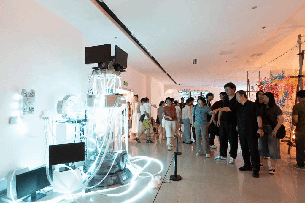 15日上午10时,工作坊团队一行抵达四川美术学院黄桷坪校区,参观四川美术学院公共艺术学院2025年本科生毕业展。由四川美术学院公共艺术学院艺术与科技系主任张永峰副教授作导览,四川美术学院公共艺术学院艺术与科技专业学生代表王天元和韩耀祯作重要作品介绍。