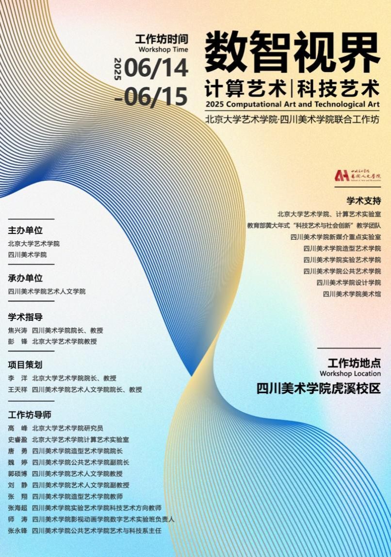 6月14日至15日,“数智视界:计算艺术|科技艺术” 北京大学艺术学院·四川美术学院联合工作坊在四川美术学院举办。本次工作坊以“科技艺术思维与未来表达”为核心主题,旨在聚焦计算艺术|科技艺术领域中正在兴起的思维模式与未来表达路径,构建一个交织理论批判、实践观察与跨校交流的平台。