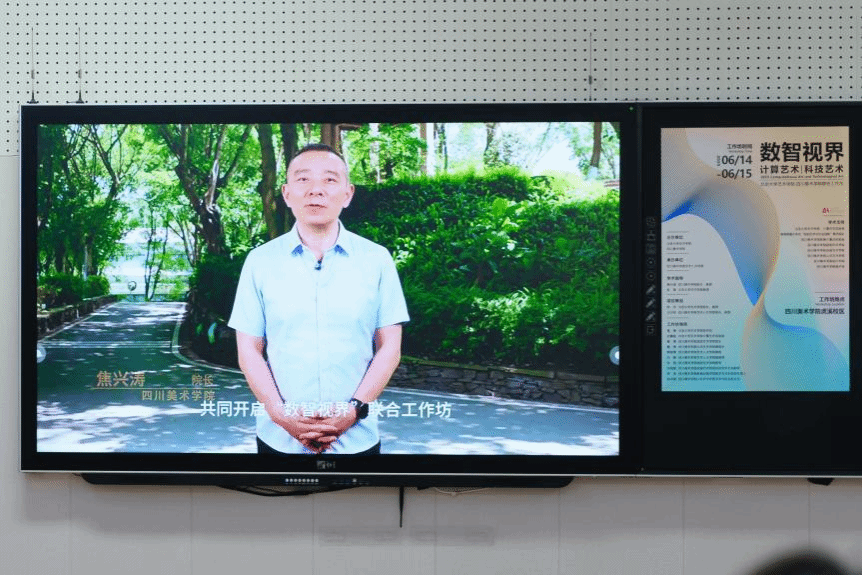四川美术学院院长焦兴涛院长为本次工作坊作视频致辞。焦院长在致辞中表示,本次与北京大学艺术学院联合举办的工作坊,不仅是一次跨校对话,更是探索艺术未来可能性的前沿平台。他表示,此次合作承载着:构建批判性认知框架,探索跨学科方法论和缔造长效合作机制的三重期待,为促进科技艺术教育共同体的共建与资源共享奠定了基石。最后,他特别感谢了北京大学团队的支持与合作,期待活动能激发艺术新灵感,共同探索科技艺术的未来方向,致力于在中国艺术教育的未来中实现跨校智慧共创。