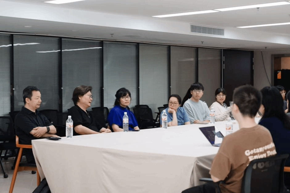 观展结束后,工作坊团队进行了学术与谈,由四川美术学院艺术人文学院刘静副教授的主持,北京大学艺术学院高峰助理教授、北京大学艺术学院计算艺术实验室史睿盈老师、四川美术学院公共艺术学院副院长魏婷教授、四川美术学院公共艺术学院艺术与科技系主任张永峰副教授出席本次学术与谈并作交流。在学术与谈上,参与本次工作坊的北大艺术学院23级计算艺术与设计班的全体本科生和博士生代表,分享了为期两日的观展心得与学术思考。