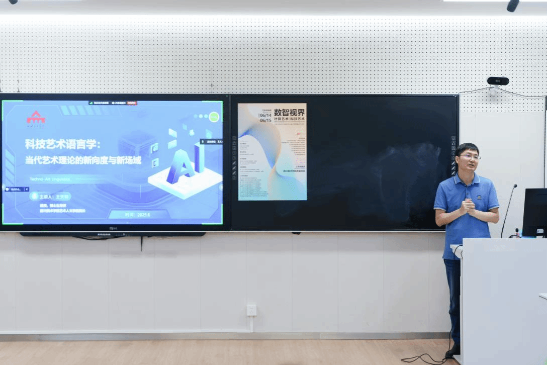四川美术学院艺术人文学院院长王天祥教授分享了科技艺术语言学研究生班的教学分享。他指出,技术不再仅仅是语言的工具,而是转化成了一种生成性网络,从而形成了新的艺术批评路径和焦点,从内容转向语法和结构性参与。此外,王老师还提到了建立新的语言生态系统的重要性,以及跨智能结构、跨媒介语言和跨文化协同在构建多智能协同语言结构中的作用。