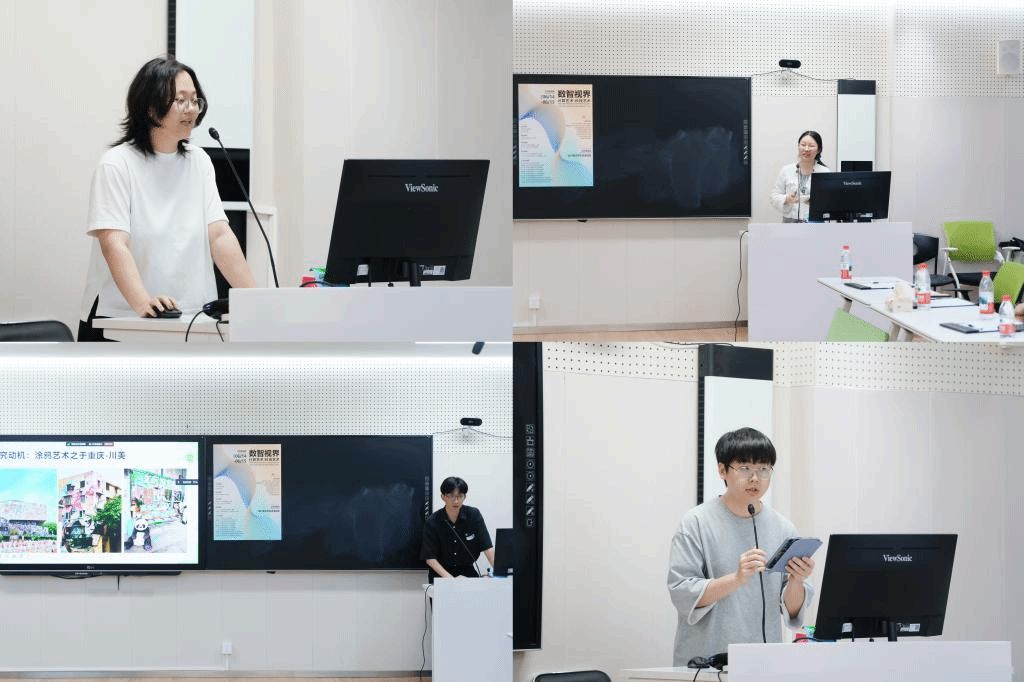 在学生交流环节,四川美术学院艺术人文学院24级研究生吴睿轩、侯艺煊和李政昱围绕各自在科技艺术领域的研究和实践,分别作主题分享。北京大学艺术学院计算艺术与设计班23级本科生许如心分享了当日在川美观看毕业展的心得,并介绍了个人在人工智能艺术领域的探索历程和实践成果。
