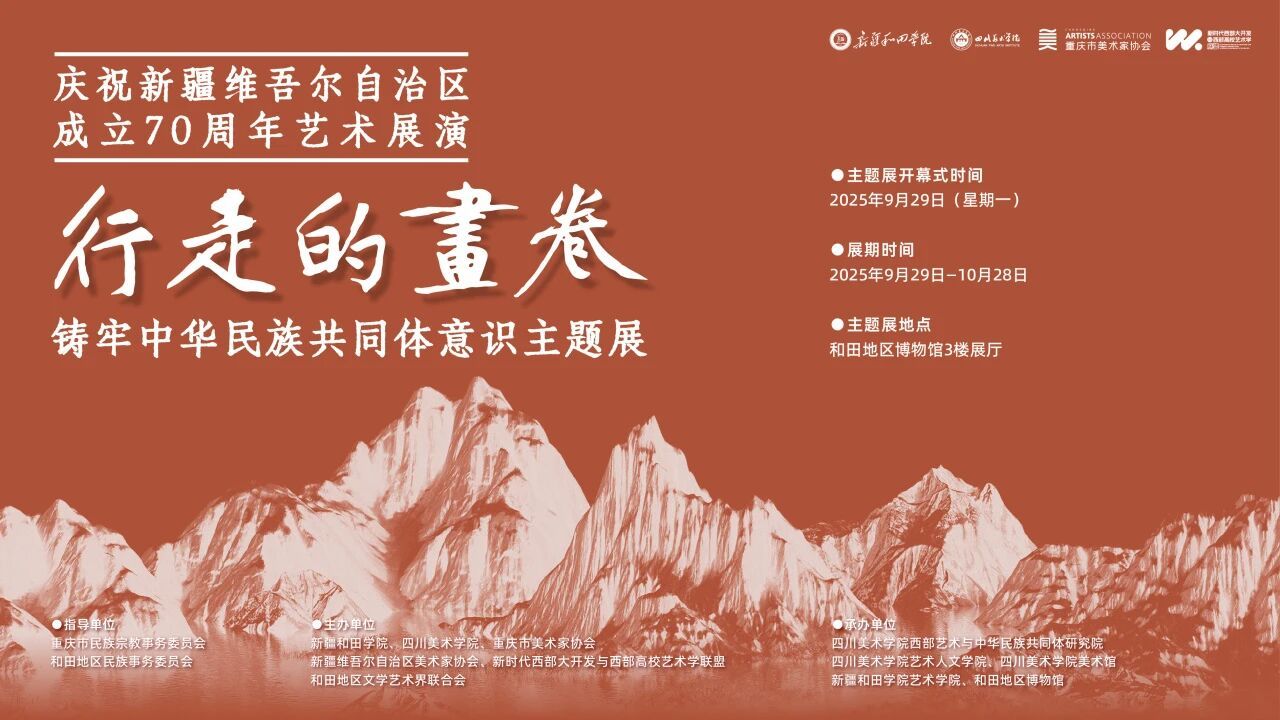9月29日,庆祝新疆维吾尔自治区成立70周年艺术展演暨“行走的画卷:铸牢中华民族共同体意识”主题展在新疆维吾尔自治区和田博物馆开幕。2025年,恰逢新疆维吾尔自治区成立70周年,七十年栉风沐雨,天山南北谱写壮丽史诗。在这具有里程碑意义的时刻,庆祝新疆维吾尔自治区成立70周年艺术展演暨“行走的画卷:铸牢中华民族共同体意识主题展”,在和田这片热土奏响新时代民族团结、美美与共的铿锵乐章。