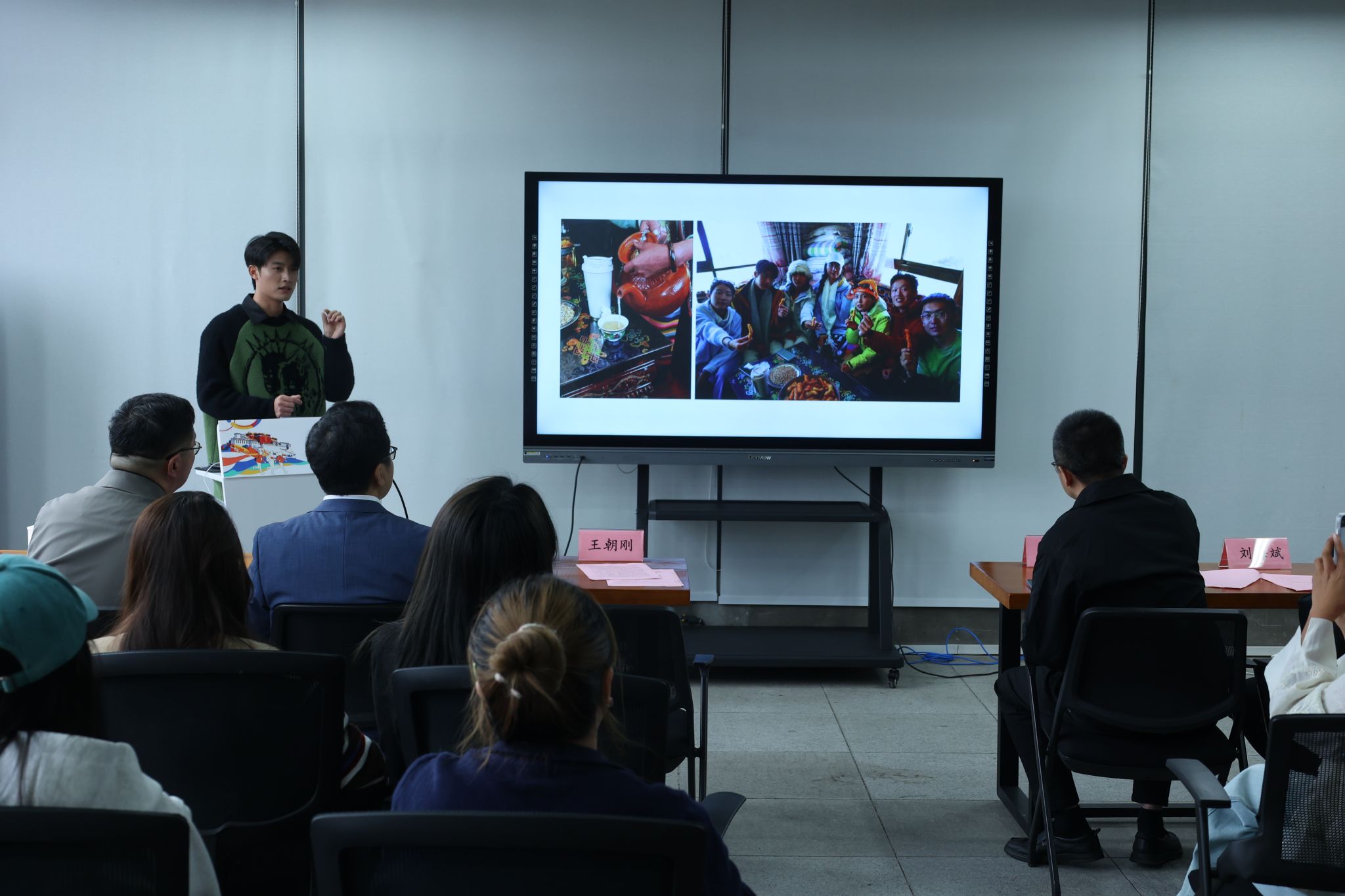 活动分为分享与交流、体验与互动两个部分。在分享与交流环节,重庆市第十批援藏干部、重庆青年职业技术学院廖勇以《缘起西藏·心系康巴》为题,分享了其援藏经历与深厚情怀。我校艺术人文学院博士研究生张念利、艺术教育学院硕士研究生刘馨之分别以《扎根生命体验的艺术实践》和《从赋能到共生:川美艺术教育支持西藏地区美育的路径构建》为题,汇报了学校师生聚焦铸牢中华民族共同体意识,深入西藏民族地区,扎根田野调查,开展艺术互鉴与社会美育的实践与思考。来自中国传媒大学硕士研究生刘钰和四川传媒学院本科生王青泽作为西藏文旅校园推介官,生动讲述了“一眼西藏·一生不忘”的旅行见闻与滚烫的青春记忆。