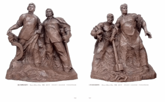 龙德辉,《斧头劈开新世界》《镰刀割淅旧乾坤》,雕塑