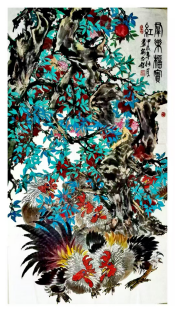 川美校内的老艺术家们带来了极具个人风格的代表作。罗力的水彩画《高原草海》,展现了西部高原的神秘与美丽;陈恩深的纸本漆画《蓝调》《沉思的天使》,以细腻笔触诠释漆画艺术的独特质感;梅忠智的新作《群乐榴实红》,用 120x215cm 的宏大尺幅展现中国画的笔墨神韵;申晓南的雕塑《亲情》,以立体造型传递时光厚度与家国情怀。还有侯宝川等已故及知名艺术家的作品,每一件都承载着对艺术的执着与对时代的感悟。
