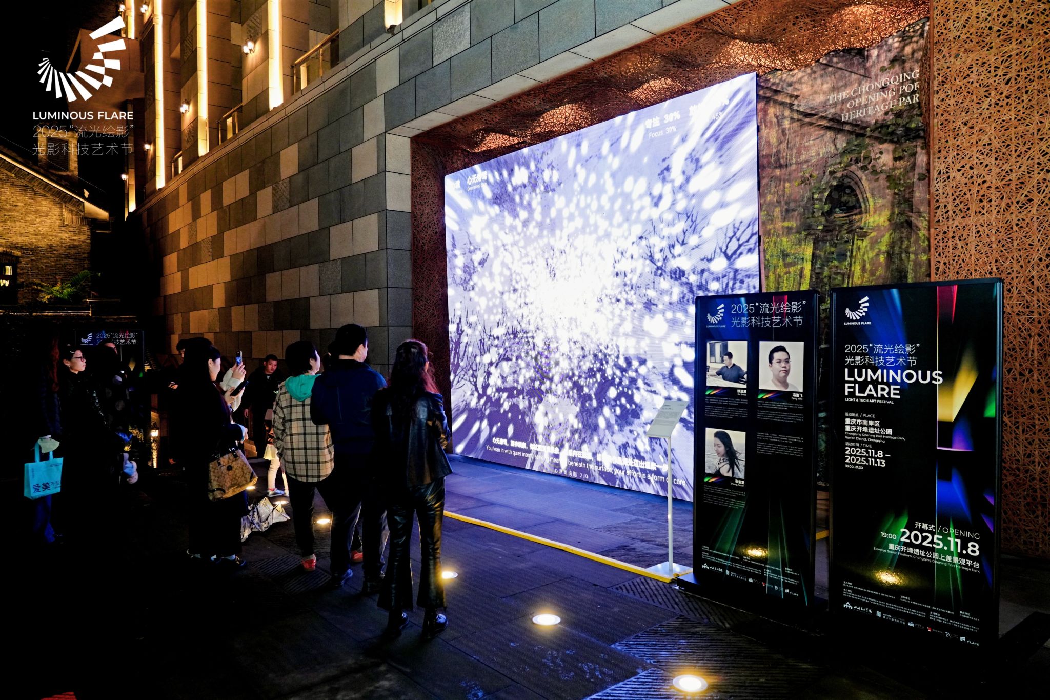 据悉,本届艺术节以“流光绘影,艺术让生活更美好”为主题,持续至11月14日。活动涵盖科技艺术影像展、科技艺术装置展、TouchDesigner社区官方工作坊等板块,汇聚全球20余组顶尖创作团队的光影作品,为山城市民带来一场跨越时空的视觉盛宴,吸引了众多市民游客参与,充分展现光影科技与城市文化融合的独特魅力。