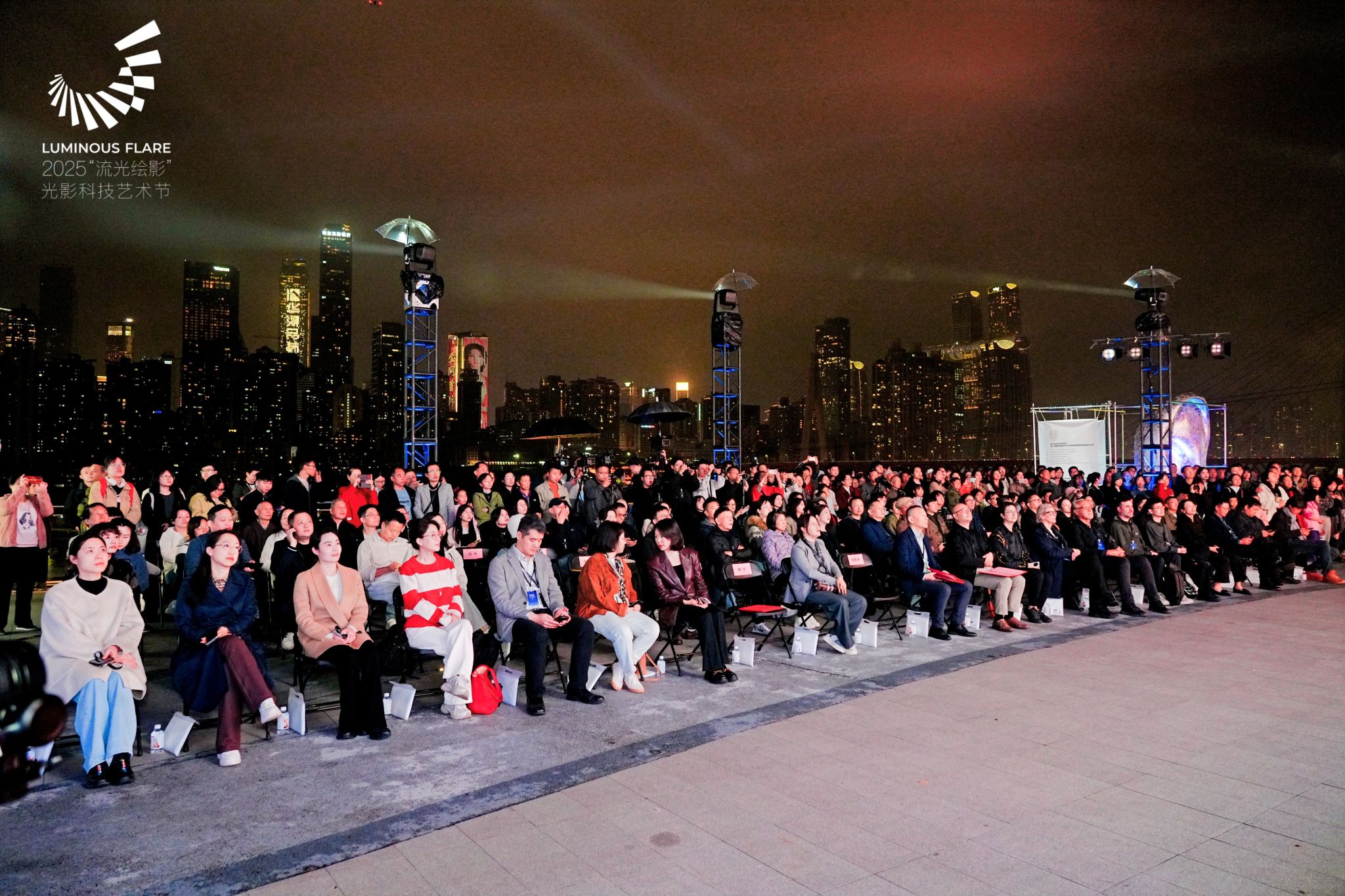 焦兴涛在致辞中指出,光影艺术节自首届在黄桷坪涂鸦街成功举办以来,已从一颗创意的种子,逐步成长为具有广泛影响力的城市艺术品牌。历届艺术节始终坚持“以城市为画布,以光影为语言”,充分依托重庆独特的山水城市空间,构建层次丰富的视觉景观;深挖重庆历史文化底蕴,运用数字光影技术活化城市历史文脉;积极推动国际文化交流,汇聚全球艺术家前沿理念,实现跨文化的光影对话。他强调,光影科技艺术节不仅是一场视觉盛宴,也是重庆提升城市形象的重要抓手和川美服务社会与推动学科发展的重要平台。