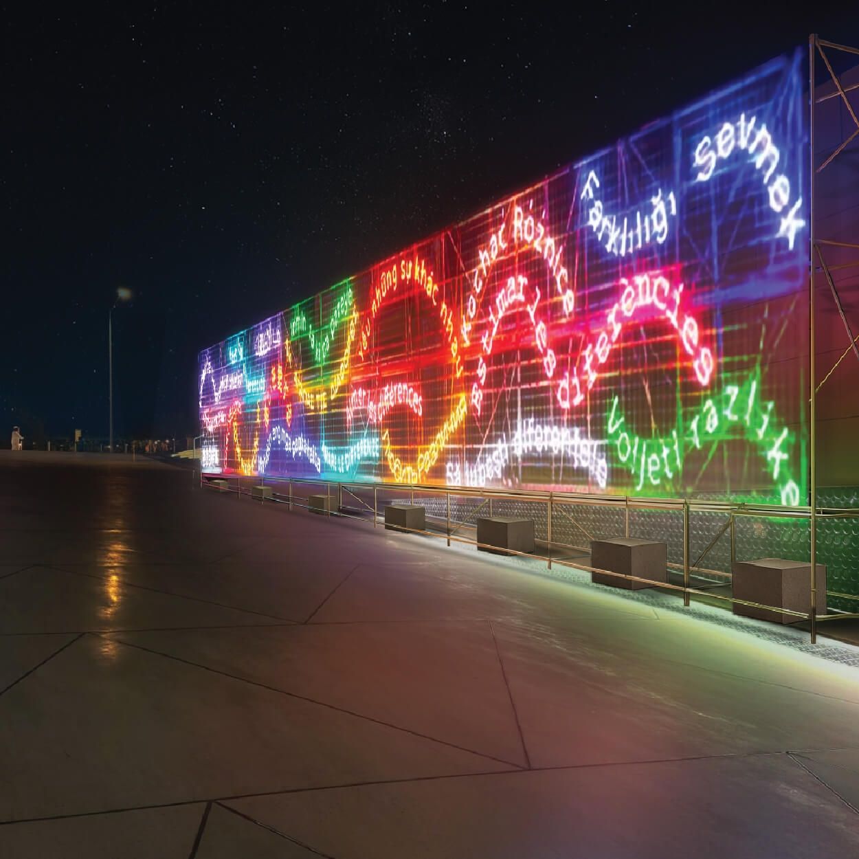 利雅得灯光艺术节是全球规模最大的年度灯光艺术节,自2021年创办以来多次刷新吉尼斯世界纪录,并以其公共艺术实践的开放性和跨文化连接能力,成为全球关注的焦点。本届艺术节聚焦城市更新、科技创新与市民参与,以历史街区与现代地铁系统双线叙事,将光的媒介转化为城市记忆与未来愿景的感知体验。