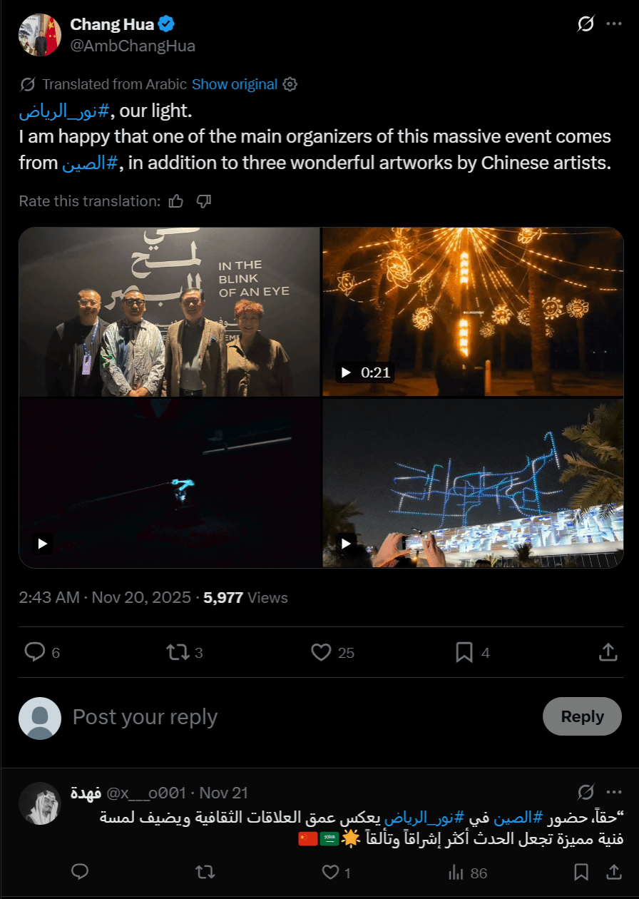 中国驻沙特阿拉伯大使常华先生点赞、转发了作品展览现场,对作品给予高度评价。