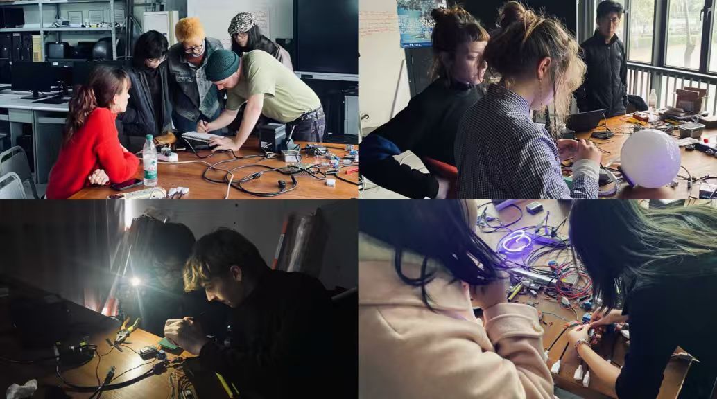 工作坊为期五天,由两校教师团队联合授课。14名来自法国学生与30余名川美学生组成跨文化混合小组,围绕“光艺术与电子媒介”主题展开理论学习与项目创作。课程内容涵盖灯光控制、电子媒介基础、装置制作与现场调试等环节,旨在培养学生的技术理解力、艺术表达力与团队协作能力。