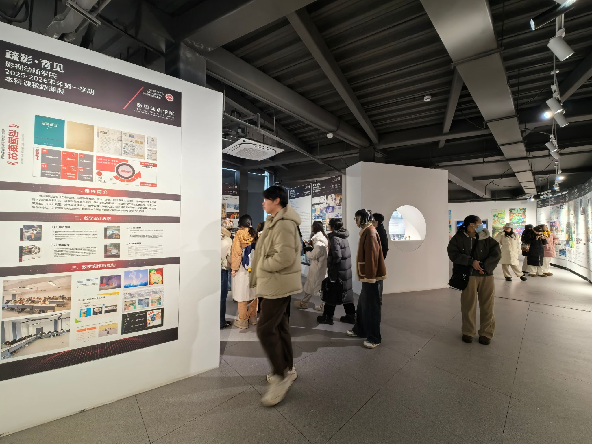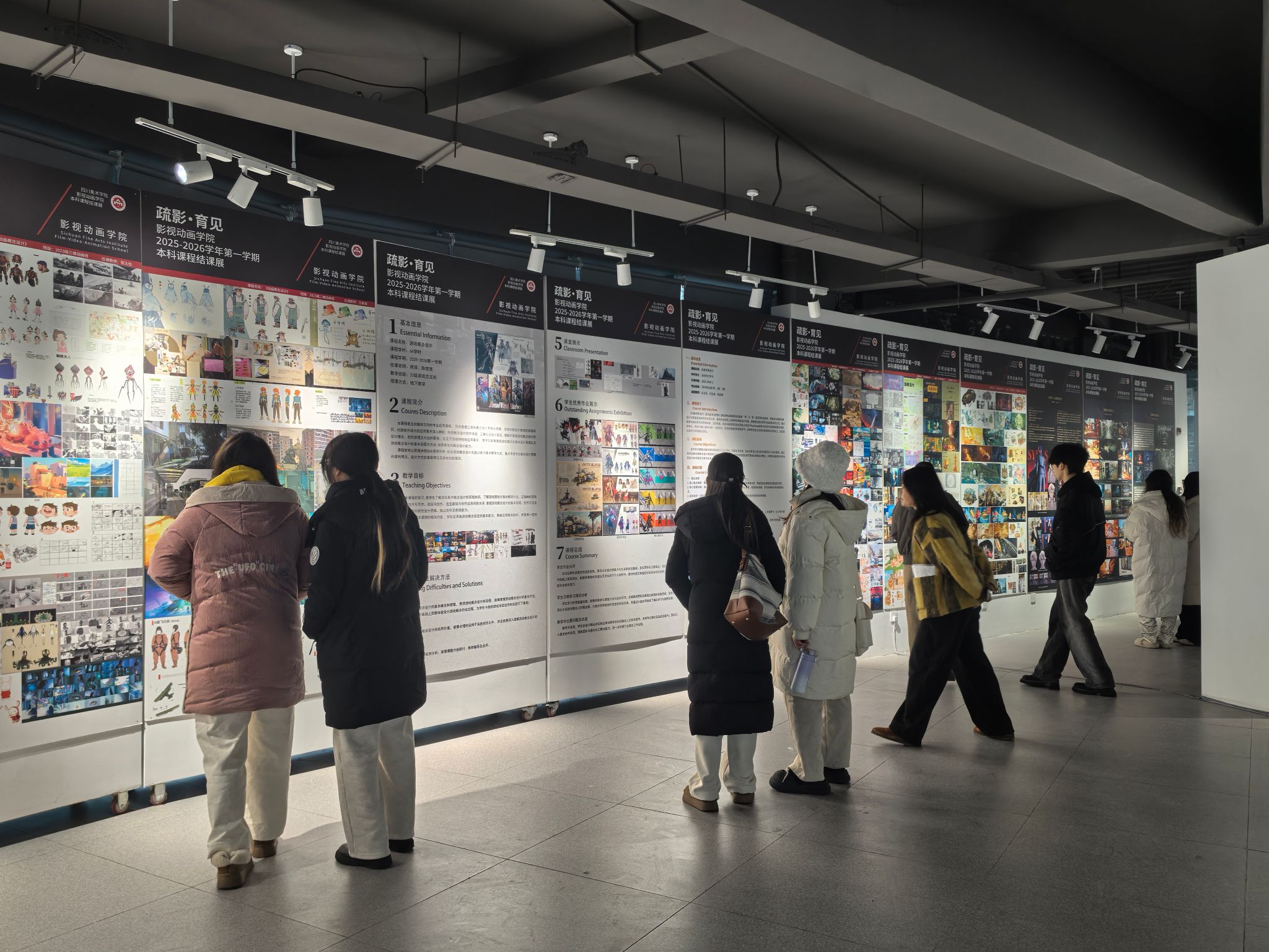 展览集中展示了本学期结课的37门课程,涵盖动画、戏剧影视美术设计、影视摄影与制作三个专业,涉及动画视频短片、角色场景设计、交互媒体设计、人工智能融合等多个领域,全面展现各专业在实践教学、创意设计与课程思政融合中的成果。展览不仅记录了学生从课堂认知到行业实践、从基础训练到综合创作的成长过程,展示了同学们扎实的专业功底和创新思维,也体现了他们对生活、社会及未来的深刻思考和独特见解,是学院教育教学质量的生动体现。