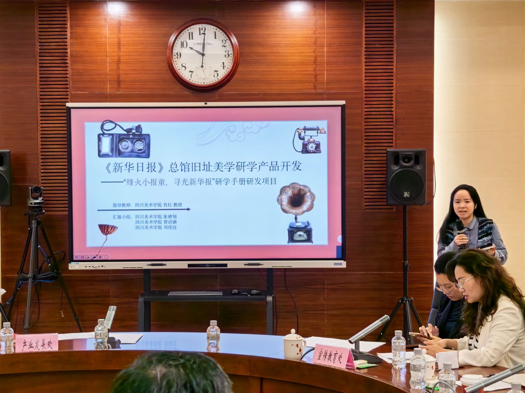 会议介绍了《新华日报》专题研学与美育产品开发情况,学校师生团队展示了美育产品方案,涵盖研学手册、教具套装、沉浸式课程等形态。作为课程思政改革的重要试点,《博物馆美育研学产品开发》研究生通选课以“解码-转译-编码”教学模式为核心,将红岩文化资源开发与文旅、社会美育紧密结合。本学期授课教师带领学生团队以《新华日报》总馆旧址为创作现场,开展了6周教学“需求调研-方案设计-产品开发-成果评估”全流程实践教学。来自全校各二级学院的23名硕士研究生分组完成并展示了“排版工坊”“新华·印迹”“烽火小报童,寻光新华报”“报馆的一天·新华日报场景盲盒设计”“新华报童”“铁笔担道义,铅火铸忠魂”“匠心之韵——可拼贴模块化版画教具开发”等方案,体现跨学科优势与产教融合理念。