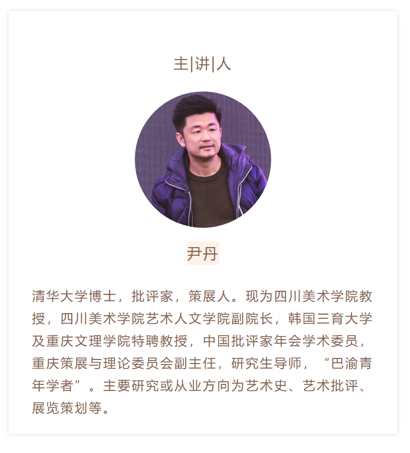 据了解,在本堂直播课上,尹丹将以“中国(艺术)乡建的历史经验及其核心症结”为题,给出他对艺术介入乡村的态度。