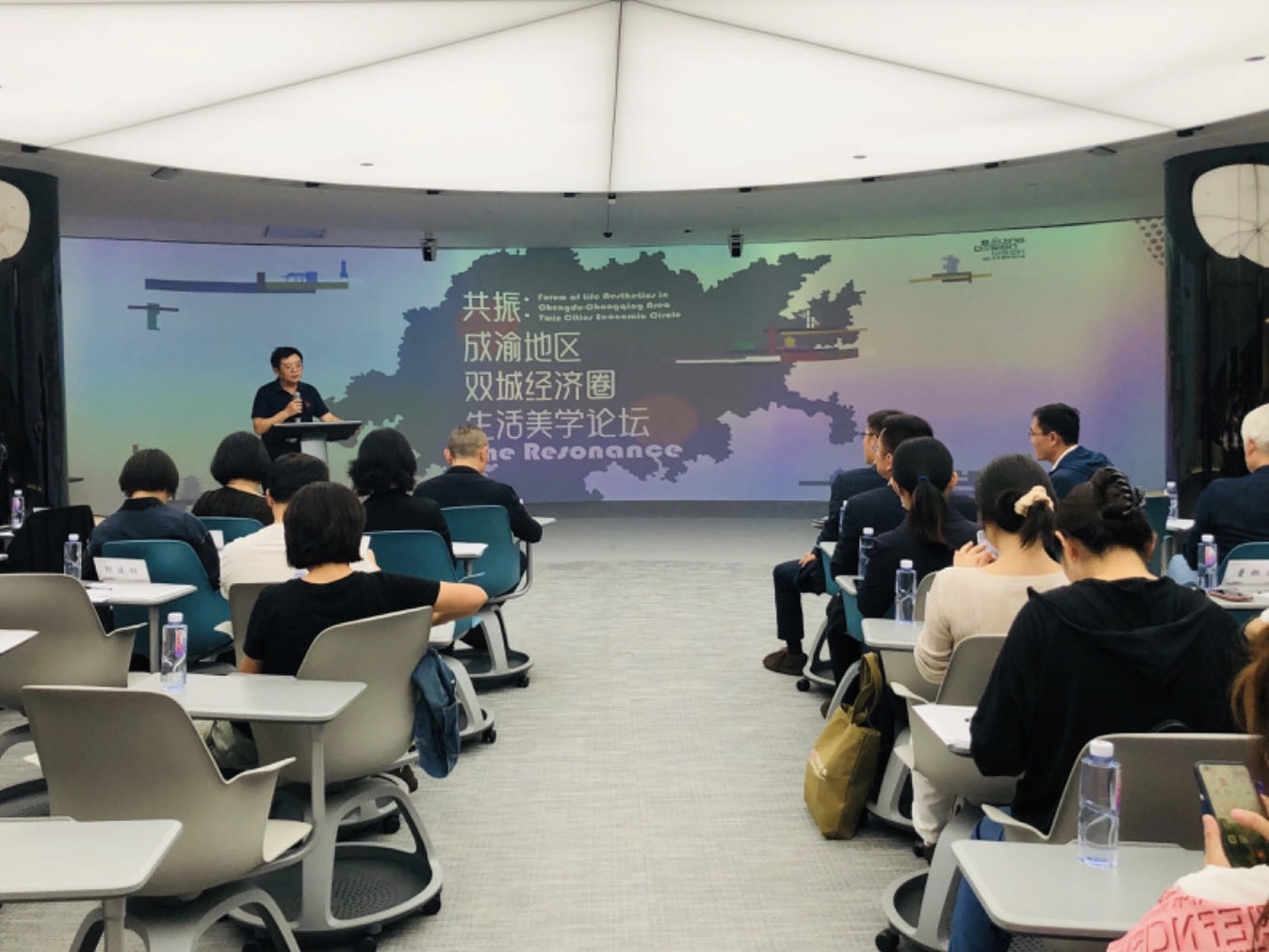 展览开幕式后,“共振:成渝地区双城经济圈生活美学论坛”在光科技馆2号智慧馆召开。四川美术学院艺术人文学院学术院长、中国美术家协会理论委员会副主任黄宗贤教授担任本次论坛的学术主持。来自北京大学、东南大学、中央美术学院,国家非物质文化遗产展览展示研究中心、中国非物质文化遗产研究院,中国文化产业促进会、四川师范大学的专家学者,围绕艺术乡建、社区美育与传统再造主题分享学术观点,展开广泛的交流研讨。
