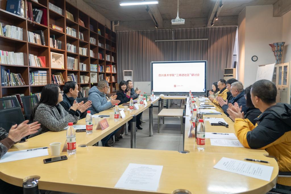 1月3日下午,市住房城乡建委设计与绿色建筑发展处处长龚毅一行3人在我校虎溪校区开展“三师进社区”研讨会。学校造型艺术学院副院长唐勇、公共艺术学院副院长魏婷、建筑与环境艺术学院、造型艺术学院教师代表参会。