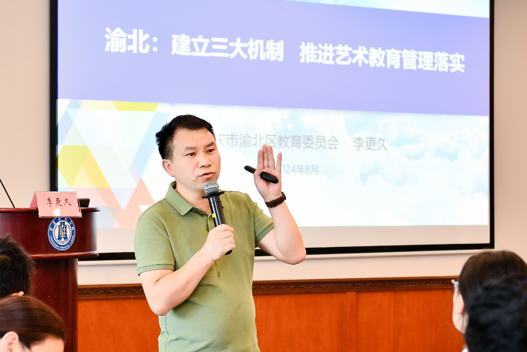 为进一步提升学校美育工作的具体落实效果,培训班还特别邀请了重庆高新区教育事务中心美术教研员、科学城第一实验小学校长宋自渝,渝北区教育委员会体卫艺科副科长、渝北区南方玫瑰城实验小学校副校长李更久,重庆两江新区童心小学教育集团的书记、校长秦波,重庆市渝北区渝开学校党支部书记、校长任茂盛等重庆市内杰出的美育行政干部及学校校长进行案例分享。他们全面而细致地介绍了各自区域及学校在美育工作方面的具体举措与显著成效,为参训的行政领导干部提供了宝贵的实践经验与参考案例。