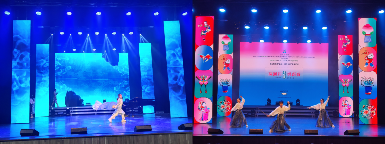 “中国日”主题活动中,中国驻喀山总领事向波表示,欢迎更多俄罗斯青年朋友到中国来,实地感受中国经济社会发展的蓬勃活力,亲眼见证真实立体的中国式现代化。四川、安徽、江西、湖北、湖南和重庆等长江沿岸6省(市)通过一段段精彩的视频,展现了各个城市独特的魅力。各省(市)青年们表演了30个文艺表演节目,令现场观众惊叹不已。我校学子陈雨萌、瞿雨佳、朱奕铭、汪越带来的舞剑、舞扇表演精彩迭现、技艺娴熟,收获了现场阵阵掌声。在非物质文化遗产项目展示区,我校造型艺术学院、中国画与书法艺术学院精心准备的书法扇面绘制、木活字与版画印刷、剪纸展示等体验环节,引得在场领导嘉宾和双方青年纷纷驻足。