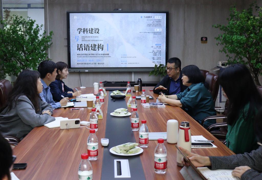 10月13日,艺术人文学院在会议室举行了“学科建设与话语建构——四川美术学院艺术学博士生第四期学术沙龙”。本期学术沙龙分享主题是“费孝通学术思想”。学术沙龙由艺术人文学院院长王天祥主持,邀请了中国艺术研究院艺术学研究所名誉所长、中国艺术人类学学会会长方李莉,和中国艺术人类学学会“美美与共”文化创新发展专委会主任、费孝通研究中心主任张喆作为对谈嘉宾。艺术人文学院党委副书记李霞、副院长董虹霞和艺术学硕博学生代表参加沙龙。