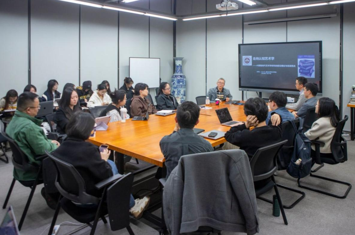 支宇以“走向认知学——AI数智时代艺术学研究的前沿理论与话语范式”为主题,与参会师生们进行了分享。他从文艺学的3个经典命题切入,从多个角度详细为同学们分析了“认知诗学”与“认知艺术学”的理论渊源与现实基础,并提出认知诗学的方法论工具“认知科学六边形”与反对“还原主义”的本体论承诺。支宇就认知艺术学对“认知模式”的拓展与对“知觉世界”的看护进行了详细的阐述,辩证讨论了“心智转换”或“心智定势转换”的内涵与个案、第二转换的“矫平与增锐”,利用《文心雕龙·神思》篇“思表纤旨”谈及当代认知诗学的运用,并从中国当代艺术的认知机制视角,探讨视觉认知两大范式:从“标准/离身”到“当代/具身”。支宇还谈到了认知艺术学的未来与展望:“具身认知”“离身认知”到“4E认知”,总结了AI数字算法时代“认知艺术学”的双重任务。
