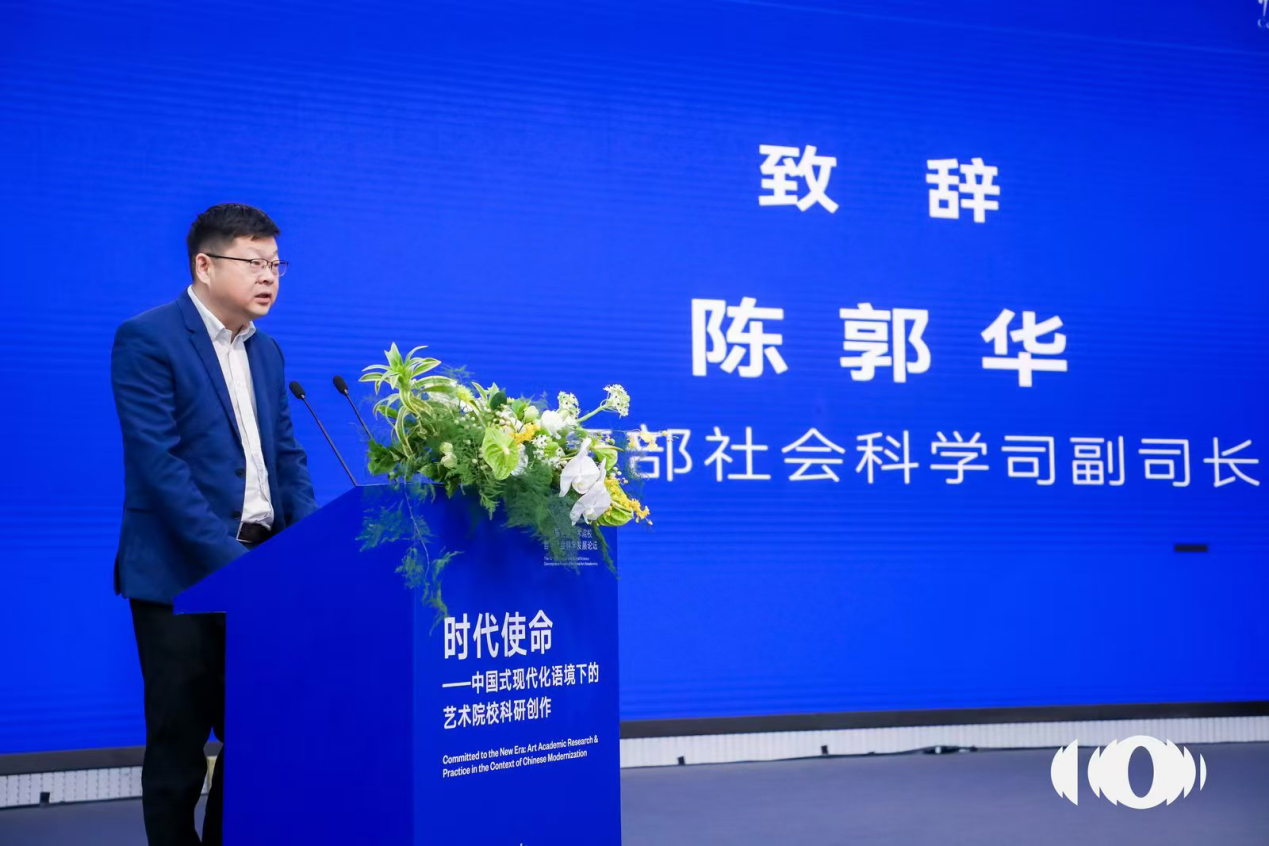 陈郭华在致辞中表示,全国艺术院校是建设社会主义文化强国、提高国家文化软实力、发挥文化引领风尚、教育人民、服务社会的重要力量,面向新时代新征程,要坚持正确方向,以“两个结合”引领贯穿科研创作;要扎根中国大地,以守正创新推进构建自主知识体系;要落实根本任务,以精品力作育美润心。