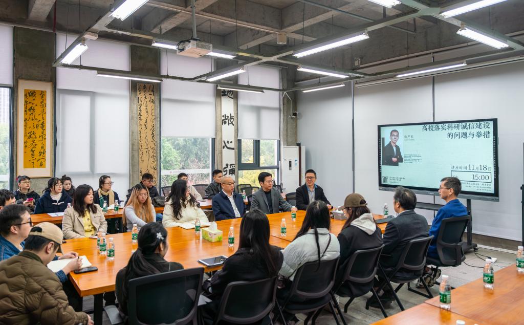 11月18日下午,创作科研处联合图书馆举办了“学术规范与学术道德建设系列讲座”第六期:“高校落实科研诚信建设的问题与举措”。讲座在虎溪校区图书馆举行,讲座结束后举行了四川美术学院“科研诚信教育实践基地”揭牌仪式。本次讲座活动与揭牌仪式活动由图书馆副馆长屈波主持。