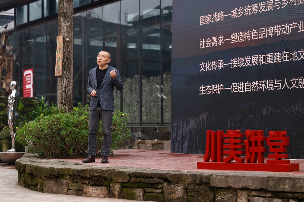 ▲四川美术学院院长、教授、博士生导师,莲花穴院落艺术活化项目总策划焦兴涛正在分享。