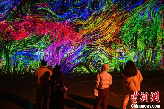 参观者在活动现场与光影互动。