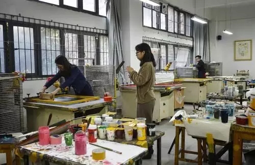 2018年3月14日,四川美术学院版画系丝网版画工作室,师生们正埋头创作。