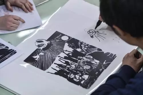 事实上,类似的活动并不是川美版画系首次开展。去年12月,版画系的师生们便用黑白木刻版画,创作了党的十九大报告中“十四个坚持”的内容,广受好评。