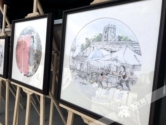 在美术馆门口,《艺绘新时代》《汶川地震十周年写生作品展》等主题展览向人们公开展出。