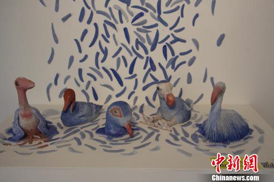 图为重庆艺术大市场暨开放的六月——2018四川美术学院艺术游开幕,作品《Blue Bird》。 高吕艳杏 摄