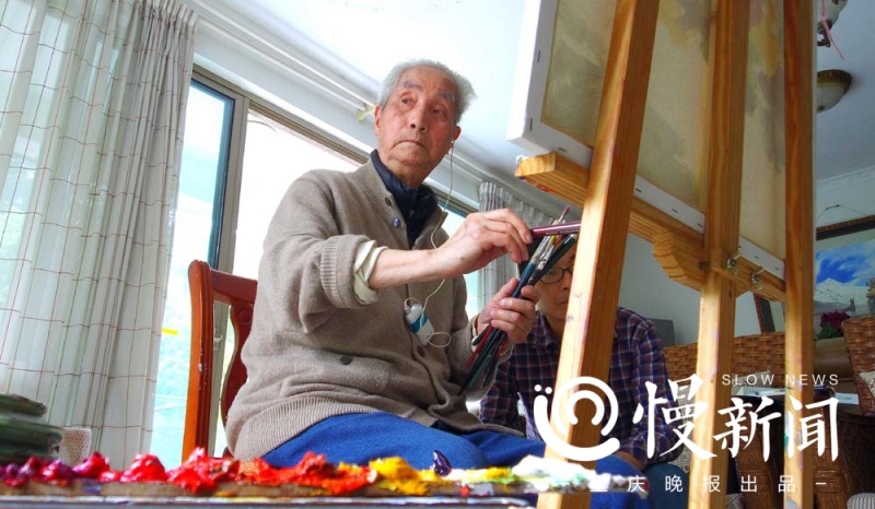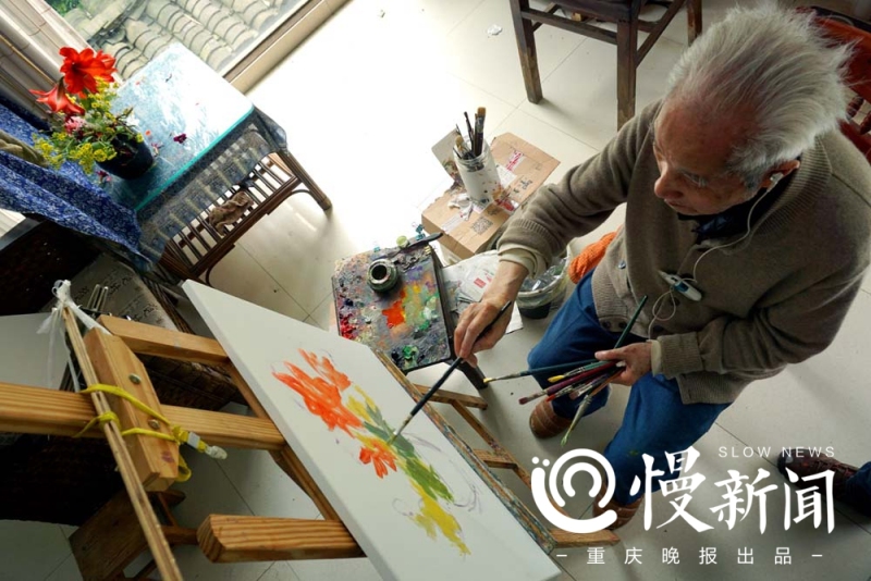 刘国枢生活恬淡,不挑食,不抽烟不喝酒,喜肥肉,晚上一碗面。几年前,他和同是画家的老伴住进老年公寓。