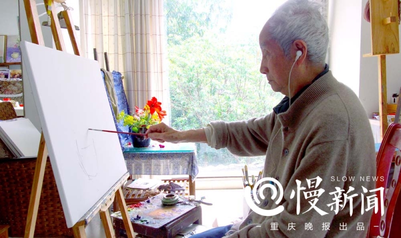 “我在武隆(当时归涪陵管辖)出生长大,父亲是民国第一代中学艺术教师,会油画,小时候见父亲作画,便有了兴趣。”老先生记得,4岁入私塾,开始临摹《芥子园画谱》,再画初级的花鸟画。10岁迁到涪陵城生活,插班到涪陵第三初级小学。那时独喜欢国画课,假期返乡途中,画乌江,画风景,画身边的人物。抗日战争爆发后,他在涪陵街头画了巨幅壁画《保卫大武汉》。1938年,他考上了从武昌迁入江津的武昌艺专,师从著名的留法画家唐一禾,开始了油画人生。