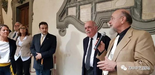 展览开幕式现场,中国驻佛罗伦萨总领事王辅国先生、托斯卡纳大区议会主席加利先生、佛罗伦萨广域市市长代表贝雷代塔女议员、佛罗伦萨市文化局局长萨奇先生、意大利艺术研究院名誉院长赞格力先生、佛罗伦萨美术学院罗卡教授、德比安科基金会主席比安科先生等出席开幕式并分别致辞。