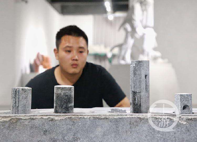 “我是山东枣庄人,我们那里有特别多的汉代画像石,因此我从小就非常喜欢石材,选择雕塑专业也是因为这个原因。”到了大三闫志勇开始创作,他毫不犹豫地选择了石头这种材质,还选择了将石头掏空。上游新闻·重庆晨报记者看到,闫志勇的右手无名指和小拇指,以及左手的食指,都因为掏空石头留下了伤痕:“三年里每一块石头都是我自己做的,没有请一个工人,先用机器割开,然后再用锤子一点点的敲。”