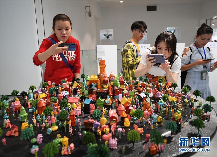 5月24日,观众在毕业生作品展上参观综合材料作品《游园会》。 5月24日,四川美术学院“开放的六月”毕业生作品展在位于重庆的四川美术学院虎溪校区美术馆拉开帷幕。展览共展出1700余名本科生以及200多名研究生的共1万余件作品,免费向公众开放。 新华社记者王全超摄